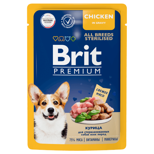 Состав: 75% мясо и мясные субпродукты (в том числе говядина 10%), мука рисовая, мука пшеничная, клетчатка свекловичная, рыбий жир, минерально-витаминный комплекс, загуститель.